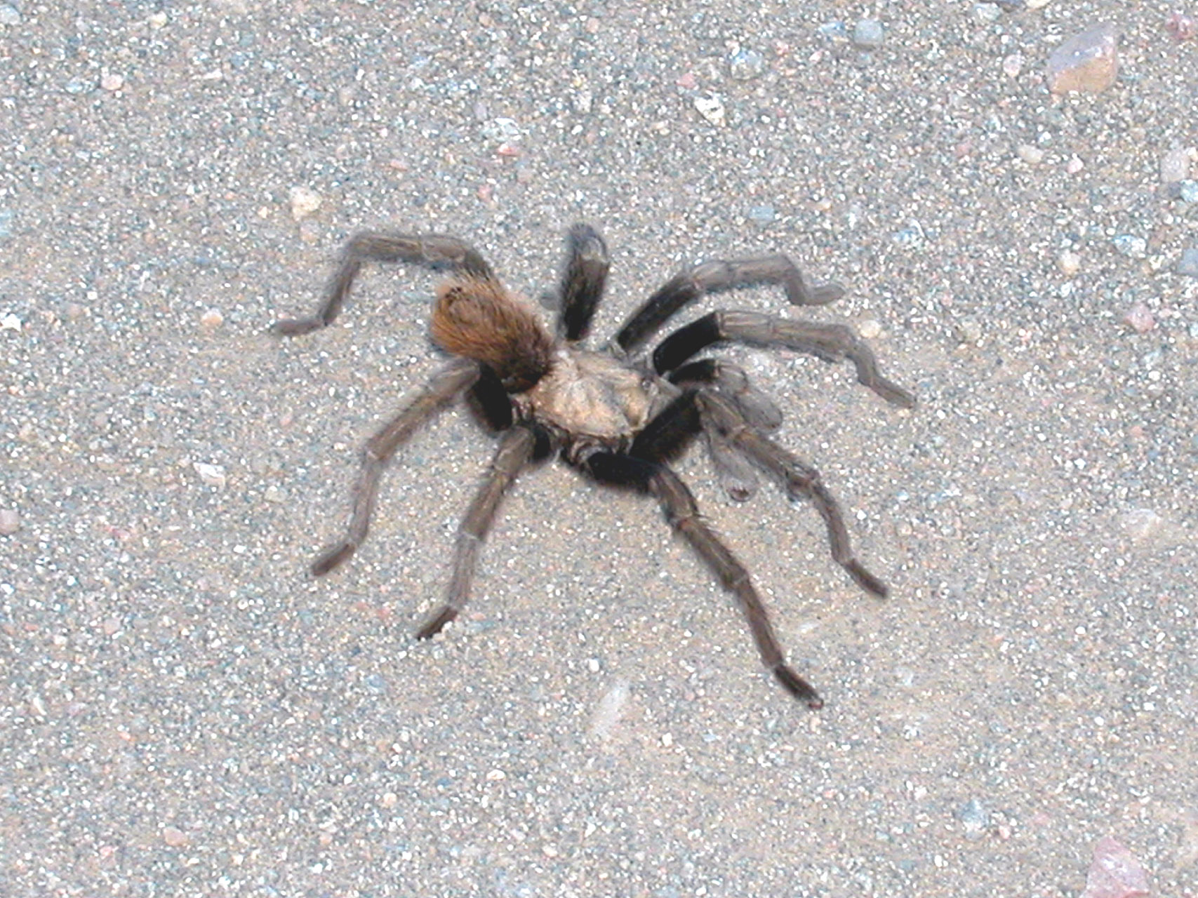 Just as we were heading down the road, a beautiful black and brown tarantula scurried out in front of the car. He wasn’t so cocky, though, when we came snooping up to him. We left him curled up into a little fist.