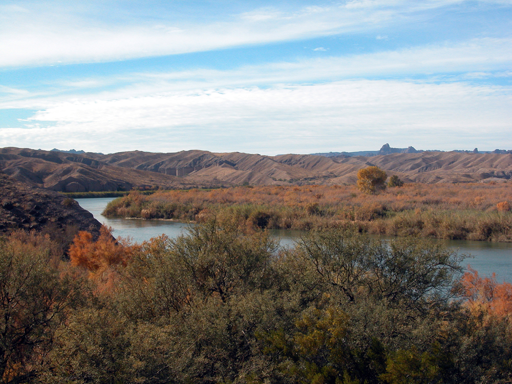 That first stretch of river, which must be some of the prettiest below Lake Mead, cuts through entirely uninhabited territory on both sides. The restricted lands of Yuma Proving Ground block all access from the east, and the rugged hills to the west are enough to discourage all but the most determined four-wheelers.