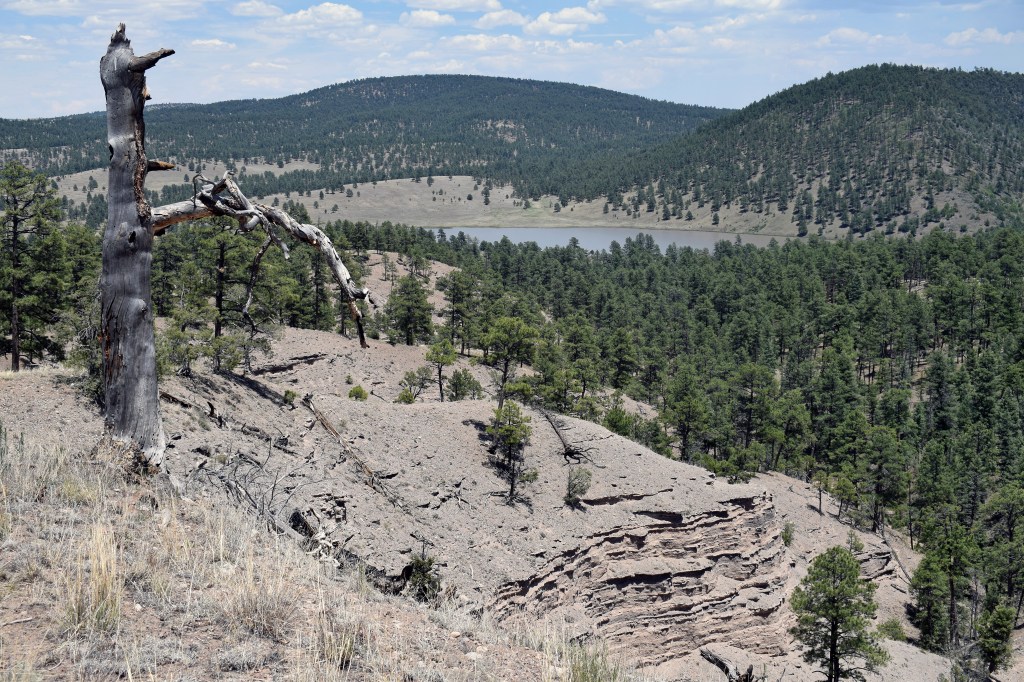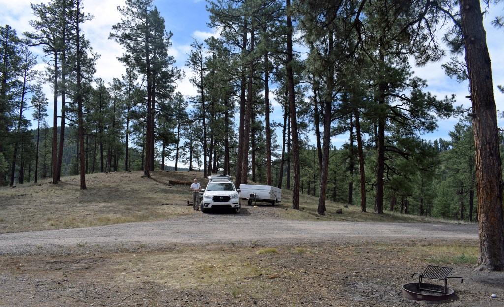 Snow Lake sits at the bottom of the gentle valley that gives birth to the river’s Middle Fork, and so has a certain claim to the title of Headwaters of the Gila. The campground there was indeed open, and its two separate loops – one overlooking the lake, the other wandering among the pines – gave us our pick of perspectives.