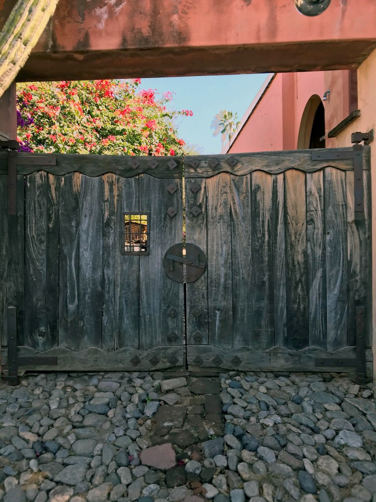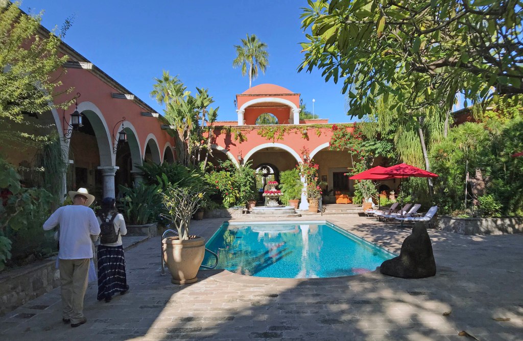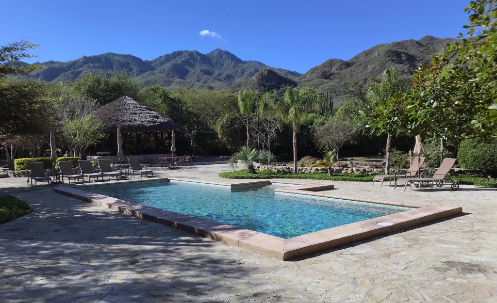 We had been encouraged to gate-crash the grounds of the top-rated resort, the Hacienda de los Santos, a couple of blocks away. As we were slipping through the entranceway, Lori thought she recognized another Yuma citizen, a tycoon in the multibillion-dollar ag industry. Sure enough, upon inquiry it was the venerable old gent himself, enjoying some leisure time in the foothills with extended family while plying his petrochemical trade here in Arizona’s sister state of Sonora. Assuredly, this unexpected link between the expanses of man-made greenery out on the nearby plains and the aesthetic of our own familiar alluvial valley a twelve-hour drive away relieved us of any hint of homesickness.