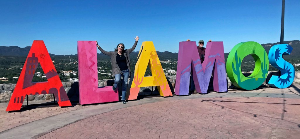 Granted, it was still early on a Monday morning, but none of the souvenir stalls on the flagstone promenade was set up for business. We had the run of the overlook on that cloudless morning, taking our fill of silly selfies among the huge metal letters spelling the name of the town – evidently a standard feature of Mexican communities, at least across Sonora.