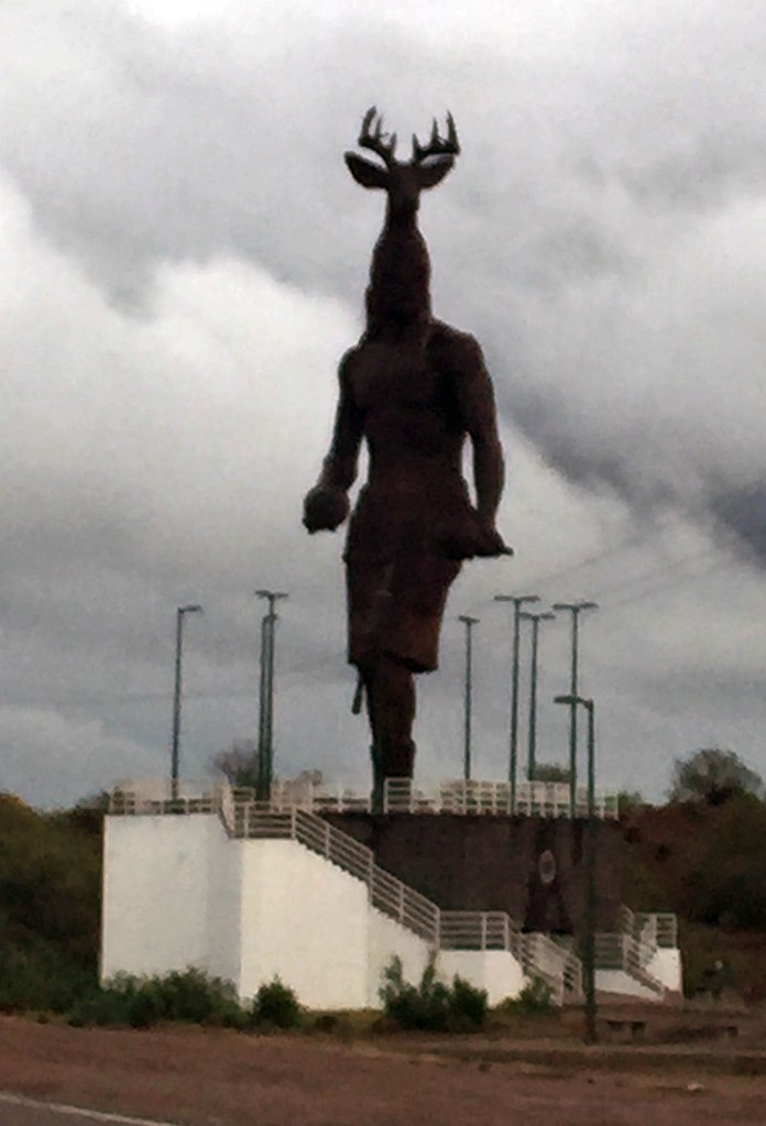 The main drag through Navojoa was a whole lot quieter on a Monday afternoon than it had been on Friday evening, and so was the concrete freeway heading north. The 100-foot statue of the Yaqui warrior with his buck’s-head headdress, dancing in place beside the Obregon bypass route, looked considerably less ominous under a sunny sky.