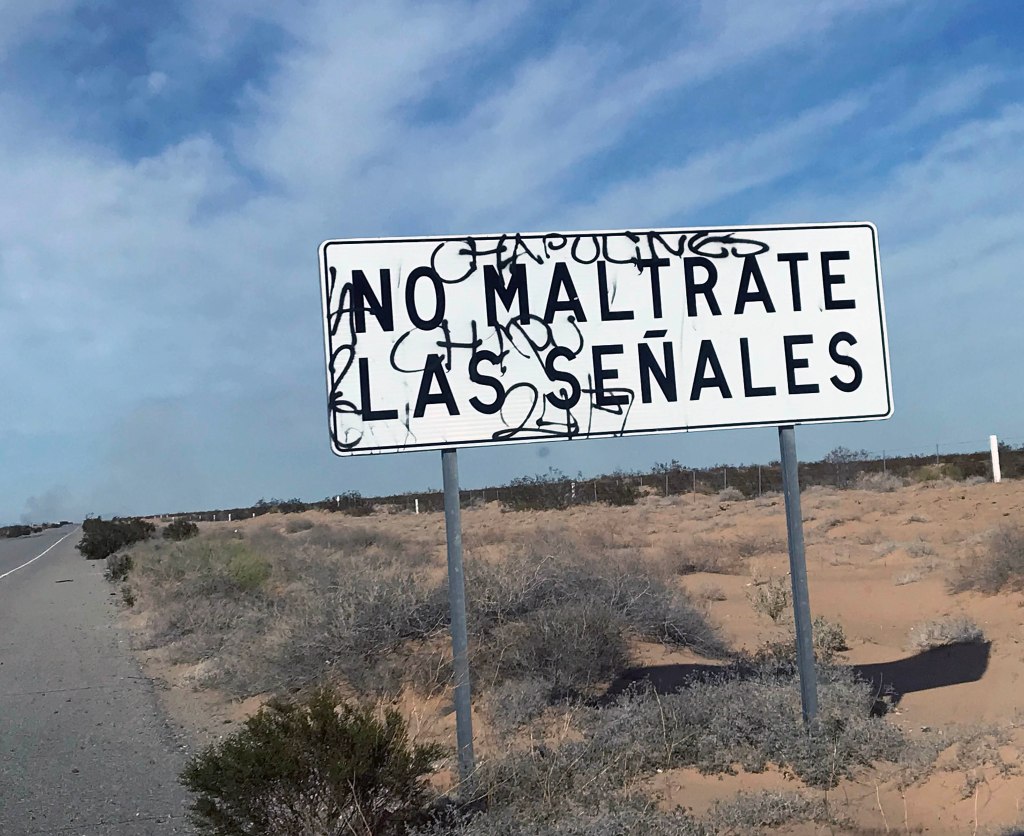 We were even more nervous once we turned north onto the pot-holed corridor walled in by high thickets, so we pulled over at the village of San Antonio – really nothing but a run-down general store – where a sheriff’s deputy was parked in his SUV, and asked for another assessment. Unlike the federale from earlier in the day, this guy was open and friendly, assuring us that the passage was muy tranquilo. I think we even had to talk him out of giving us an escort.