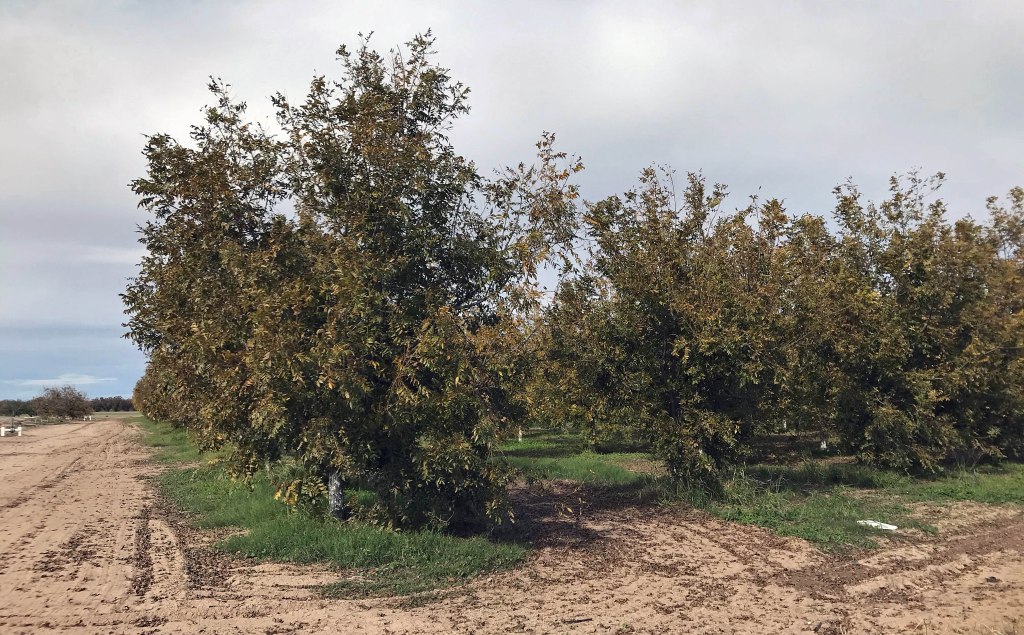 The road angled northwest, then north, and took us through a flat stretch of land that made us almost homesick. Dirt driveways led off the pavement toward ranch-style houses, each with a clutch of extended-cab pickups sitting in front. In between lay what looked like pecan groves alternating with sheep pastures, all connected by a network of canals.